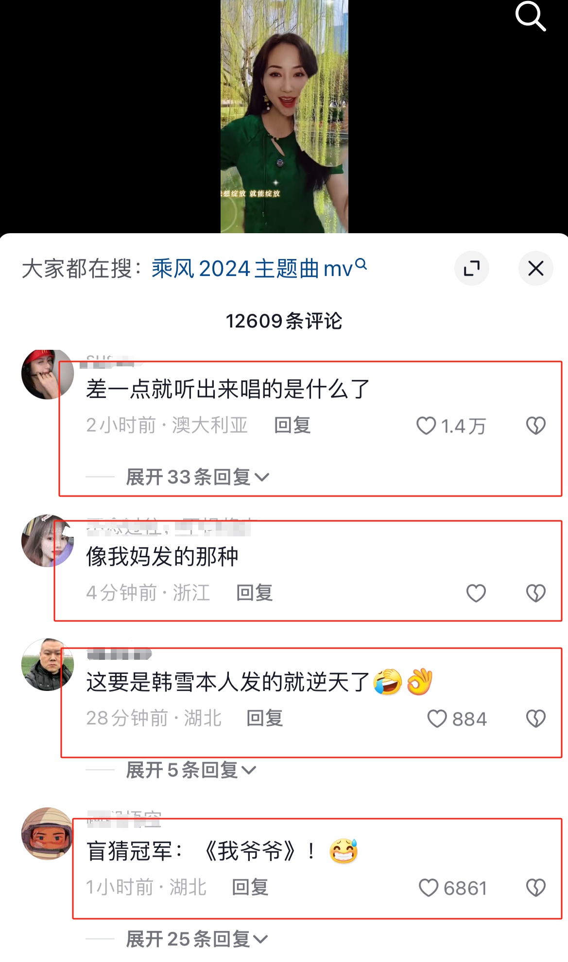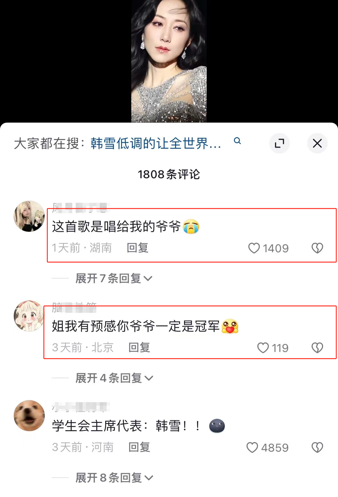 此次韩雪刚刚在搪塞平台,放出来在浪姐的预报大片,驳斥区也齐刷着“这首传颂给我爷爷”,“凭我的爷爷内定冠军”等,提前预判她的预判。