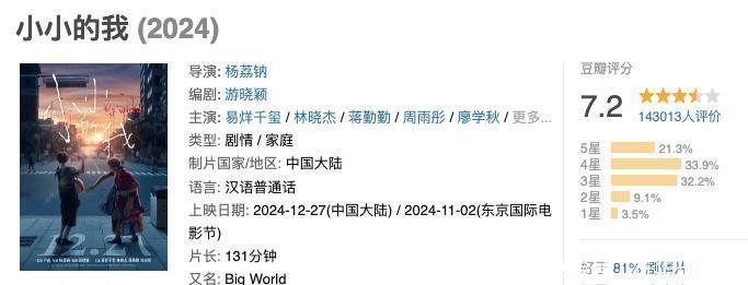 因为易烊千玺自带的宏大流量和麇集公论对于流量的自带争议,《小小的我》在聚集合获利的评价黑白常南北极化的,不乏有价值的商讨,但也有一些造作的角度,说这是“破钞”底层东谈主士。