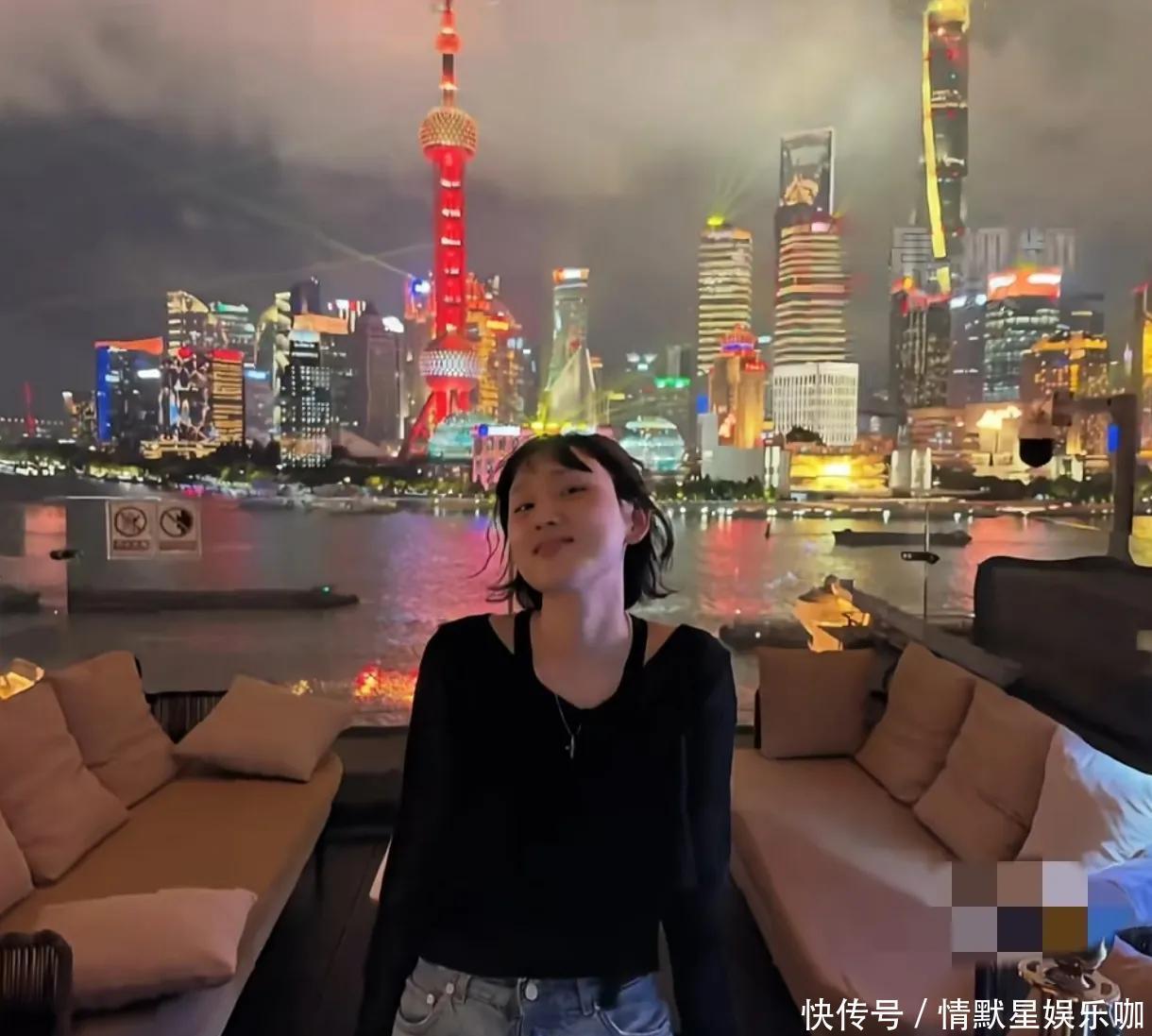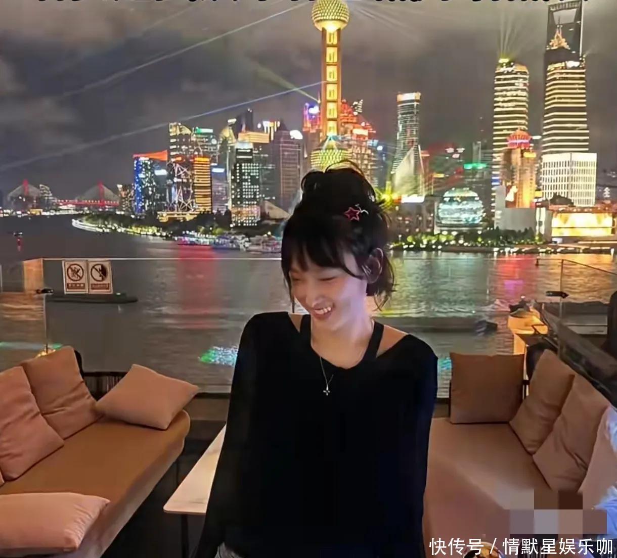 她来到了上海的餐厅,后头等于东方明珠,看到如斯好意思景,她也兴盛的连拍多张像片。
