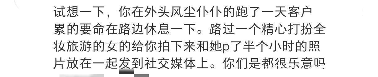 这关于打工东谈主来说,是很见怪不怪的场景,即使在上海这种华贵的皆市,也有这么的情况。可刘慧英把这个像片和我方好意思好意思度假的像片放在统统,确乎失当。