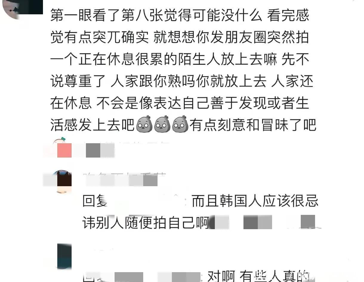 她跟东谈主家又不熟,凭什么豪恣拍了别东谈主的像片就发到网上,况且她照旧个公世东谈主物,没思过会给别东谈主带来困扰吗?